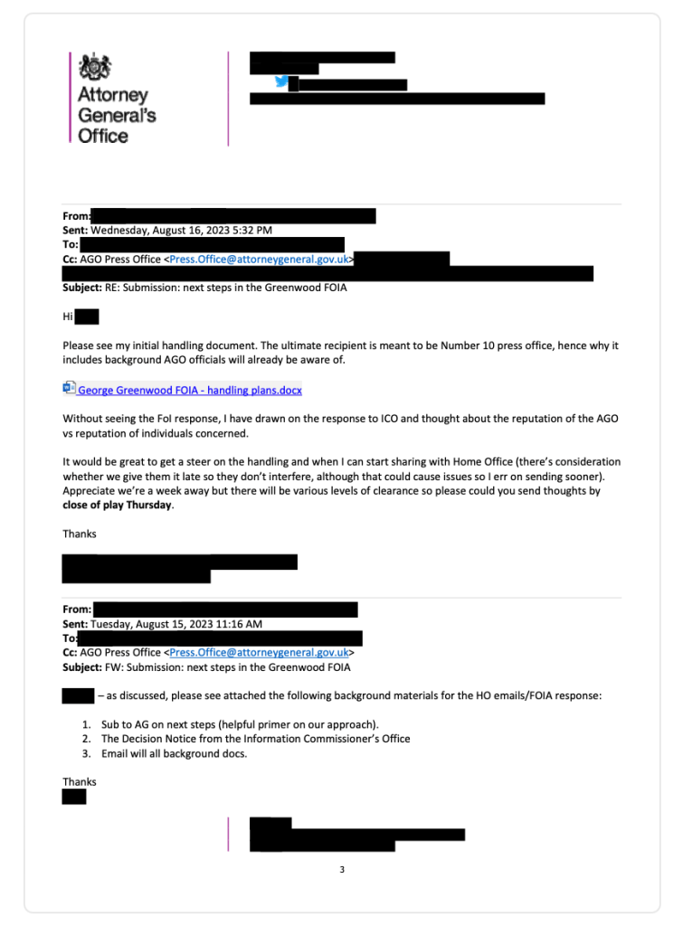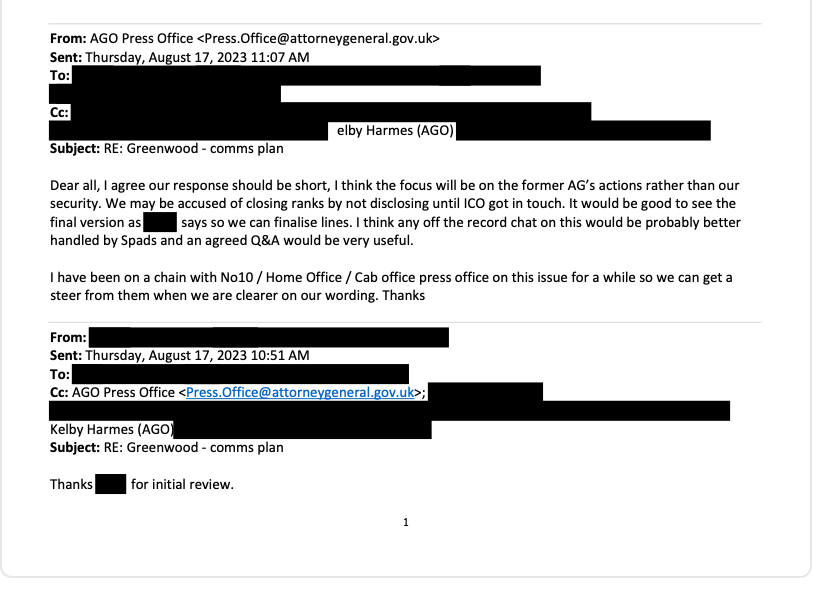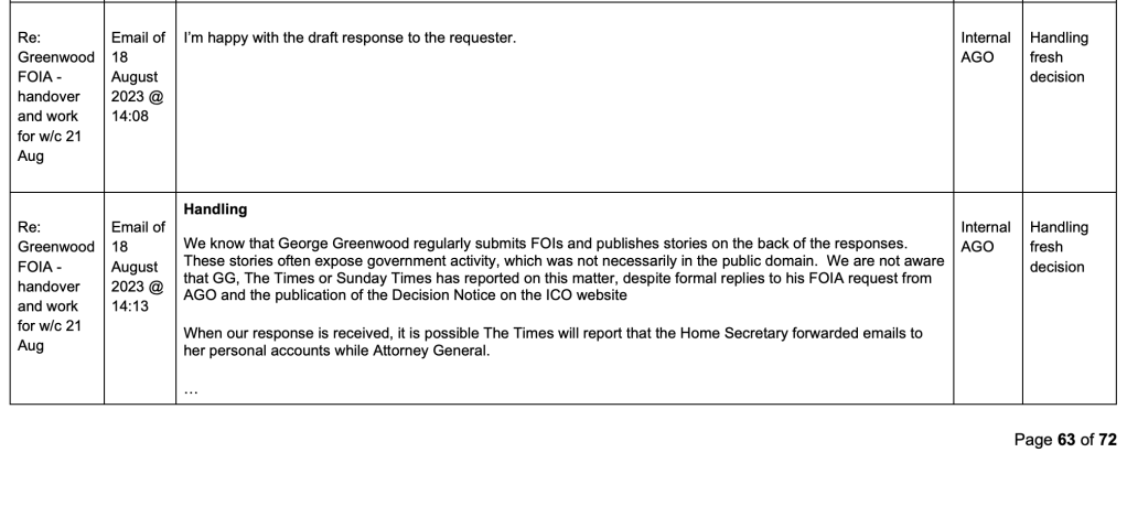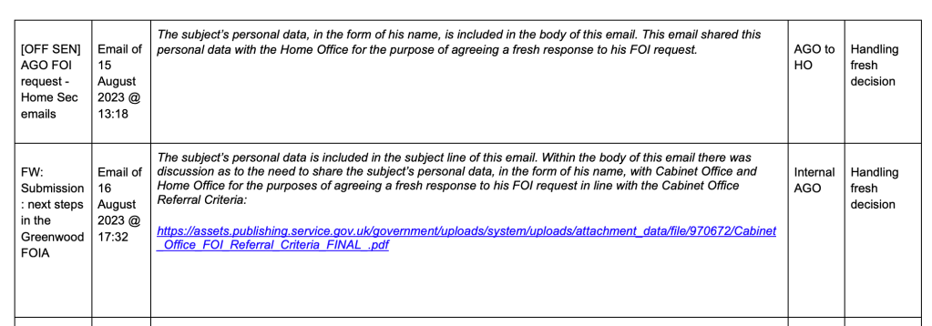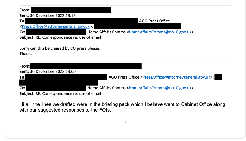 But more unexpectedly, the SAR showed the request was being extensively flagged to both the Cabinet Office and Home Office.